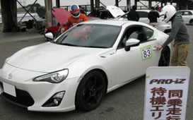 | まずは参加者が運転して、インストラクターが助手席からドライビングを確認(貴重な逆同乗走行) 直接助手席からインストラクターが各自の運転を確認するので、手に取る様に運転のクセや間違いが分かる! |